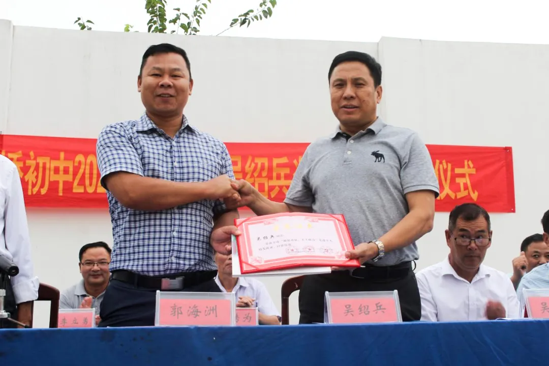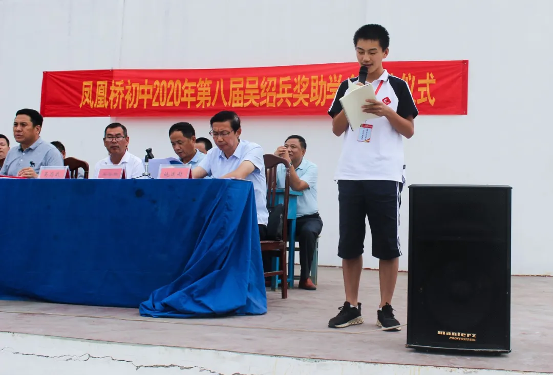 陡沟镇党委、政府代表对吴绍兵先生连续八年为凤凰桥中学学生发放奖助学金的善举表示衷心的感谢。